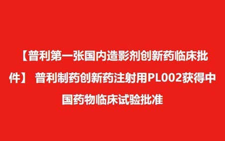 【普利第一张国内造影剂创新药临床批件】 永利3044集团官网创新药注射用PL002获得中国药物临床试验批准