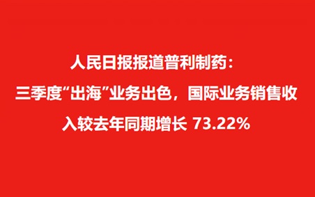 2024年11月2日,人民日报健康客户端发表名为"业绩最高增长73.22%,多家药企靠“出海”获得新增长"文章...
