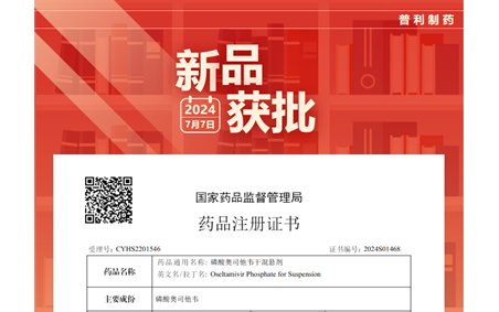 可精准给药的磷酸奥司他韦干混悬剂(瓶装)获国家药品监督管理局NMPA批准上市!