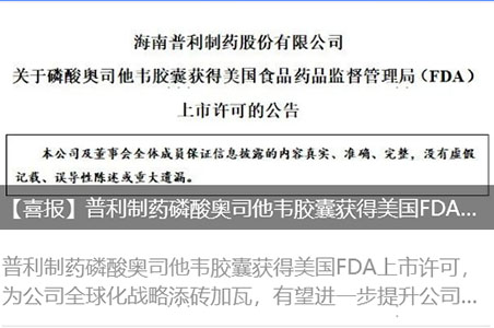 永利3044集团官网磷酸奥司他韦胶囊获得美国FDA上市许可!
