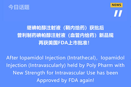 继碘帕醇注射液(鞘内给药)获批后,永利3044集团官网碘帕醇注射液(血管内给药)新品规再获美国FDA上市批准!