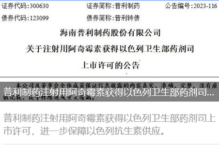 永利3044集团官网注射用阿奇霉素获得以色列卫生部药剂司上市许可
