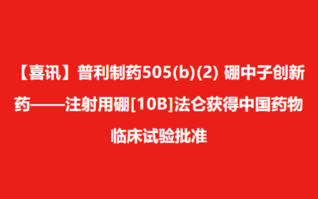 【喜讯】永利3044集团官网505(b)(2) 硼中子创新药——注射用硼[10B]法仑获得中国药物临床试验批准