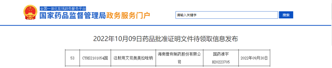 【喜报】永利3044集团官网生产的注射用艾司奥美拉唑钠继美国、荷兰获批后,在中国获批上市!