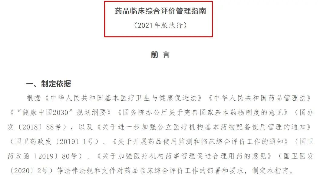 药品临床综合评价以人民健康为中心,以药品临床价值为导向,利用真实世界数据和药品供应保障各环节信息开展药品实际应用综合分析,探索建立并逐步完善基于政策协同、信息共享,满足多主体参与、多维度分析需求的国家药品临床综合评价机制。